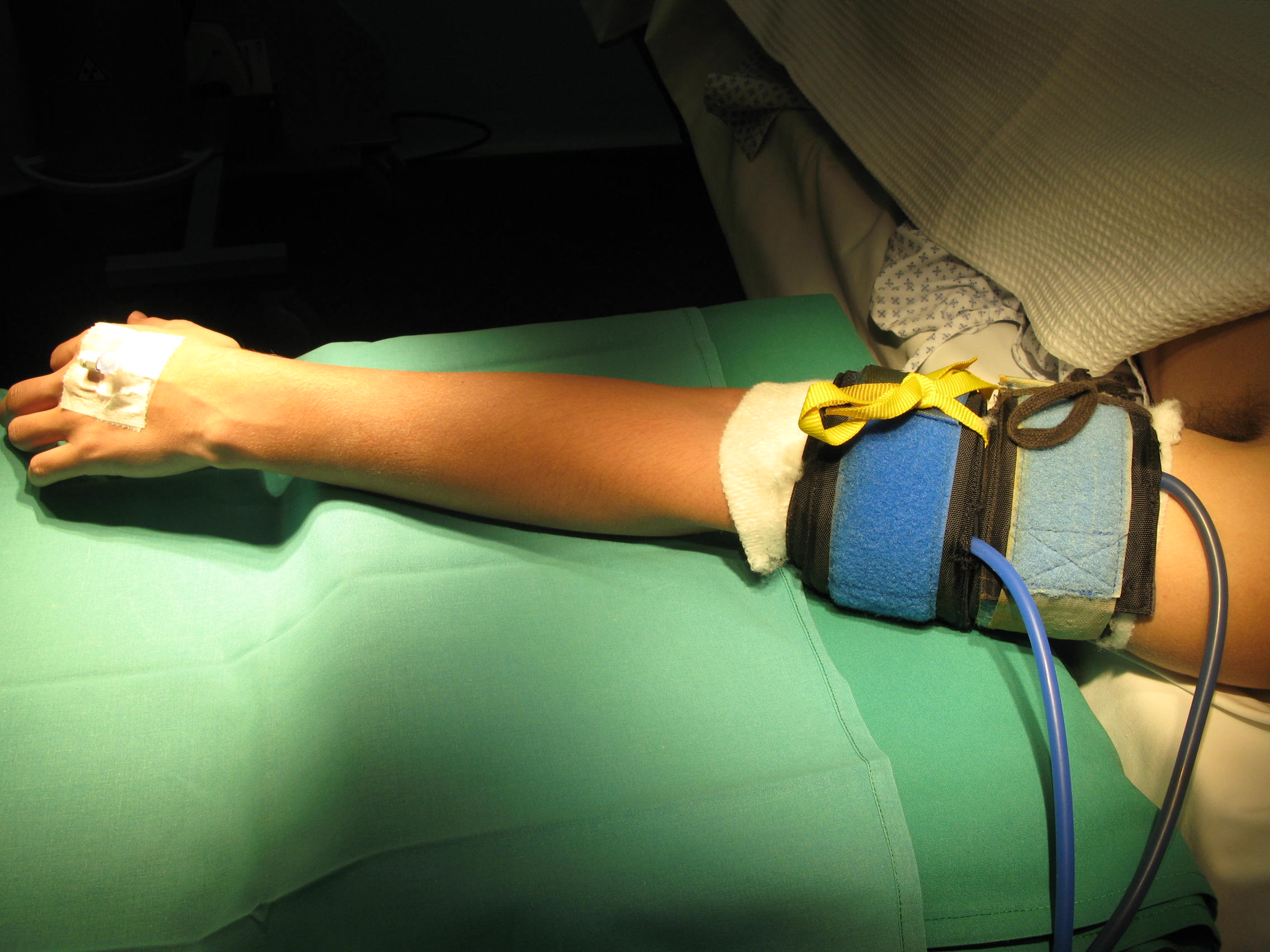 le garrot proximal). Un troisième garrot sur l'avant-bras n'a pas