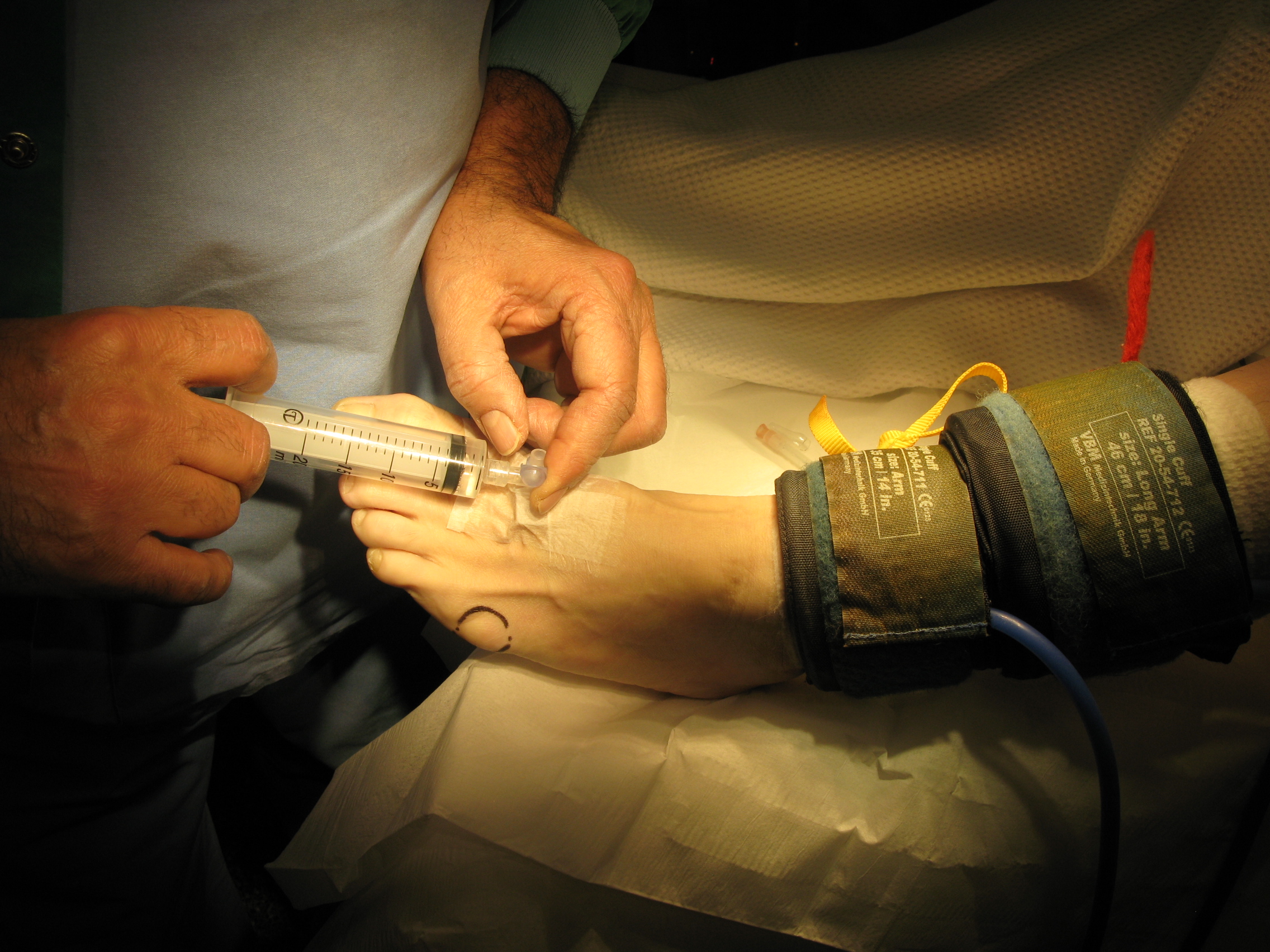 gonflé le garrot distal sur le bras (et dégonflé